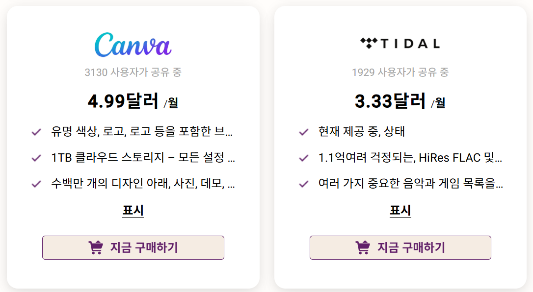 정가 대비 최대 70% 가까이 절약할 수 있으며, 하나의 계정으로 여러 플랫폼을 동시에 사용할 수도 있습니다.