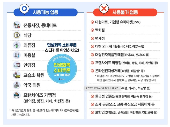 백화점, 대형마트, 유흥업소 등은 사용 제외될 예정이며, 사용기한은 약 4개월로 계획 중입니다.