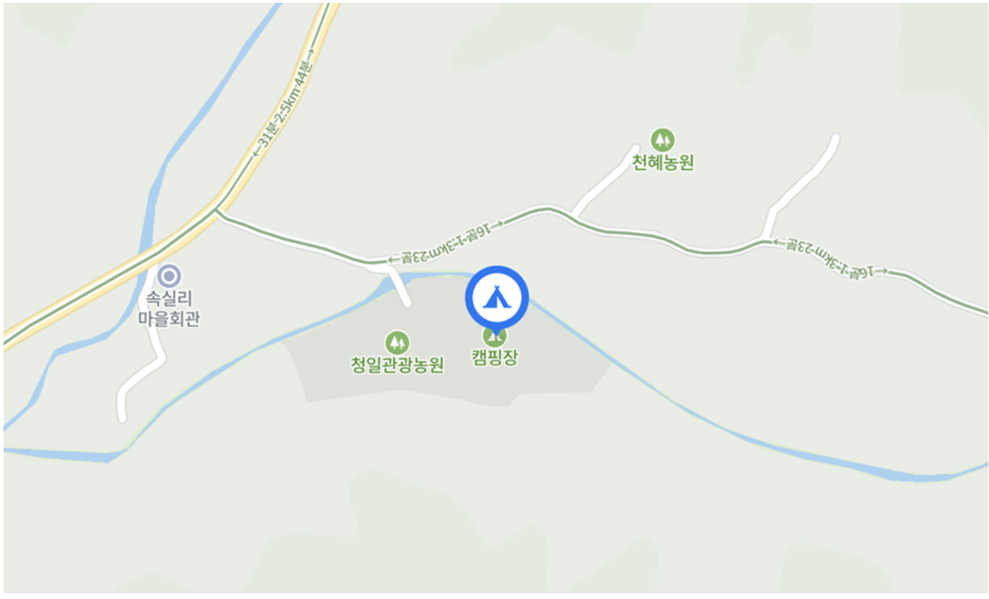 - 아이들과 함께하는 안전하고 시원한 계곡: 여름철 차박 캠핑의 백미는 역시 물놀이죠. 청일관광농원 옆에는 수심이 깊지 않아 아이들이 안전하게 물놀이를 즐길 수 있는 계곡이 있습니다. 어른들의 가슴 높이까지 오는 깊은 물도 있어 어른들도 시원하게 더위를 식힐 수 있습니다. 계곡 옆에 자리를 잡고 타프를 치면 자연의 물소리와 함께 진정한 쉼을 경험할 수 있습니다.